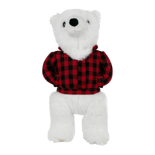 Plush Polar Bear with Flannel Jacket Squeaker Toy