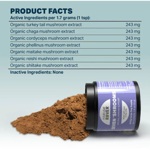 Four Leaf RoverOriginal price $49.99 - Original price $49.99Original price$49.99$49.99 - $49.99Current price $49.99| /An organic blend of 7 medicinal mushrooms for dogs. When grown harvested and administered correctly, mushrooms are natures greatest superfood. ...